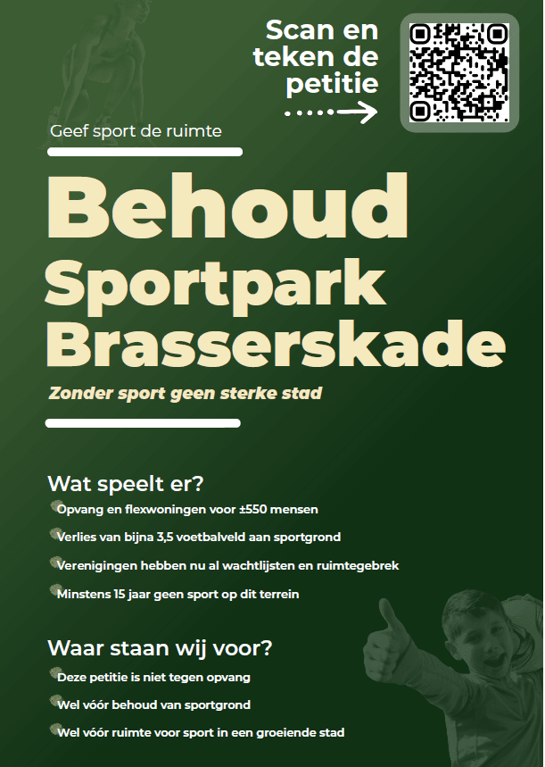 Teken de petitie: Geef sport de ruimte, behoud Sportpark Brasserskade